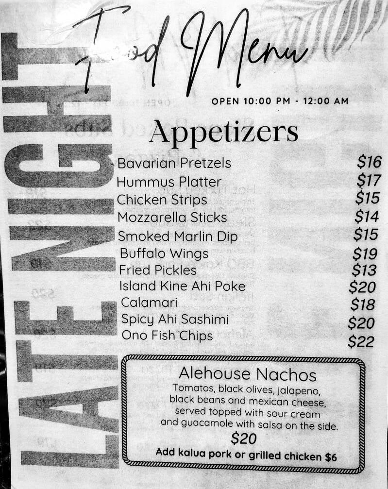 Late Night Menu 10pm-12am